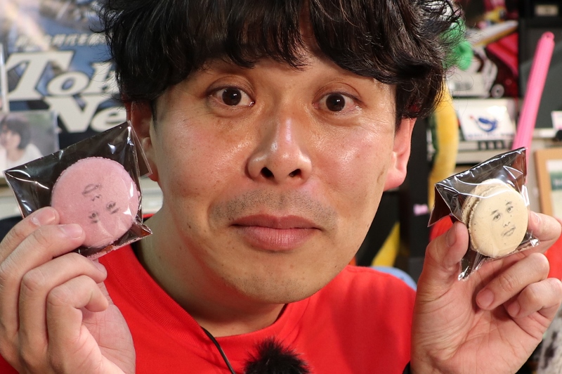 ニコ生スタッフからはこんさんの顔が描かれた「デス神マカロン」!いやあゲストにこれほど引かれるマカロンがあるとはww