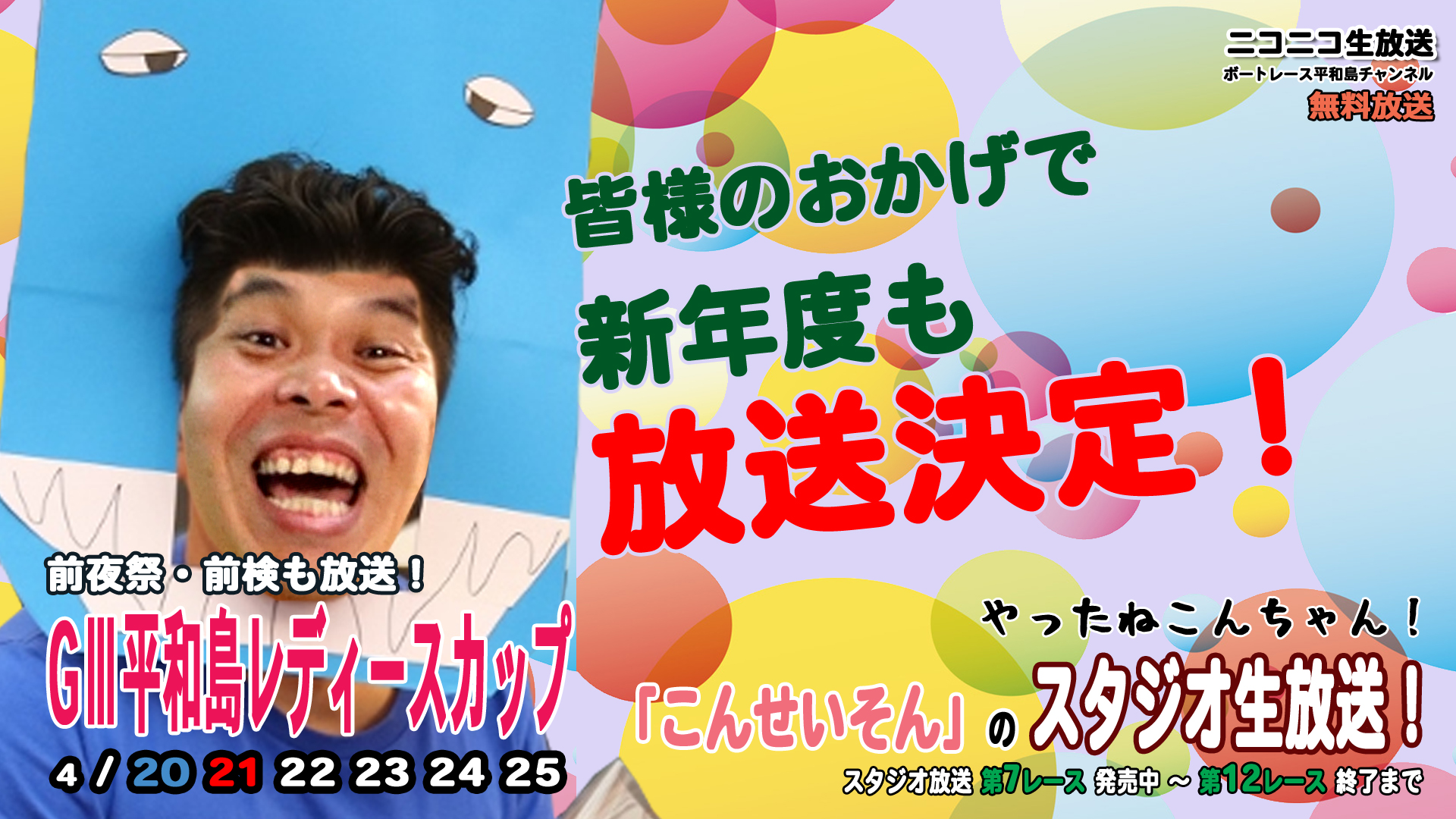 2019/04/04(木) 14:39 ニコ生放送ボートレース平和島チャンネル『こんせいそんのスタジオ生放送!』GⅢ平和島レディースカップ