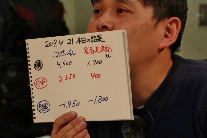 おお!こんさん新年度初的中(生放送時)!!連敗を「6」で止めましたあ!…え、ガミッたの?さすがあ~w マネージャーさんも的中!がんばれ星名さん!