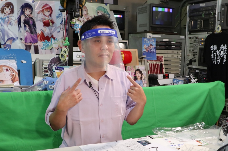 スタジオにゲストのお迎え出来る日の為に、フェイスシールド・・・曇ってますがww
