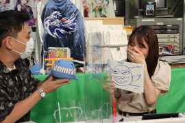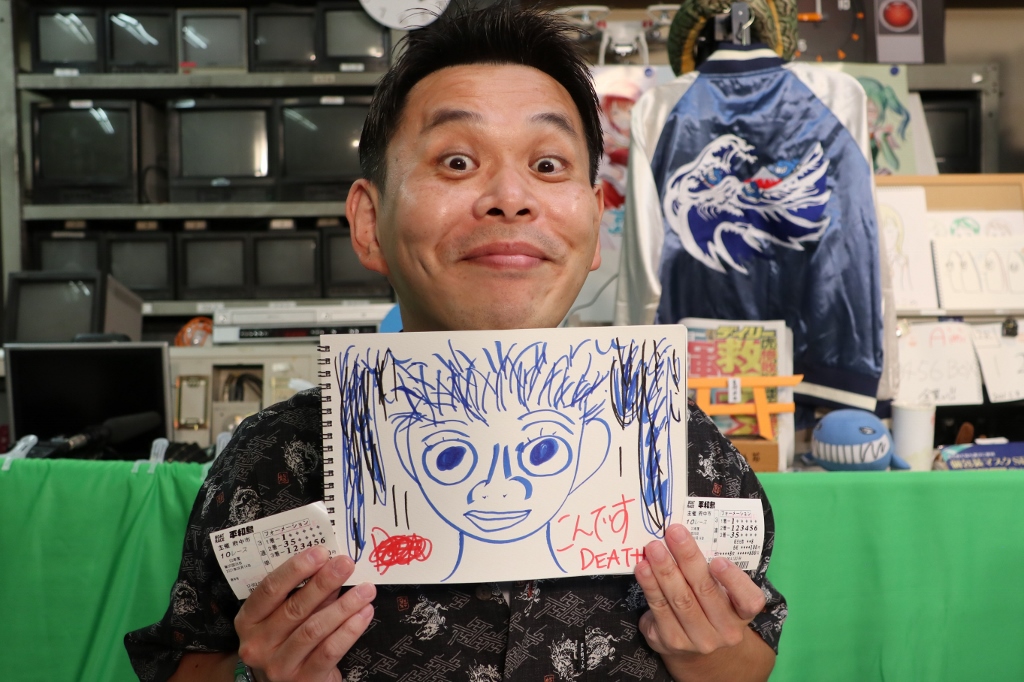 今度はこんさんの似顔絵を諸塚画伯が描いたら、こんさんが的中!おお!画伯パワ