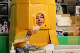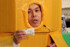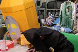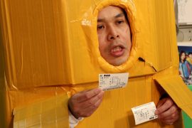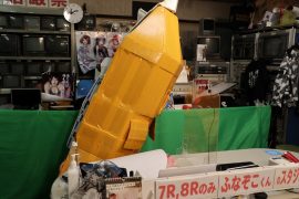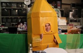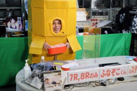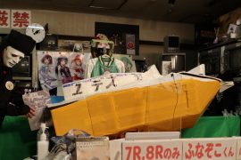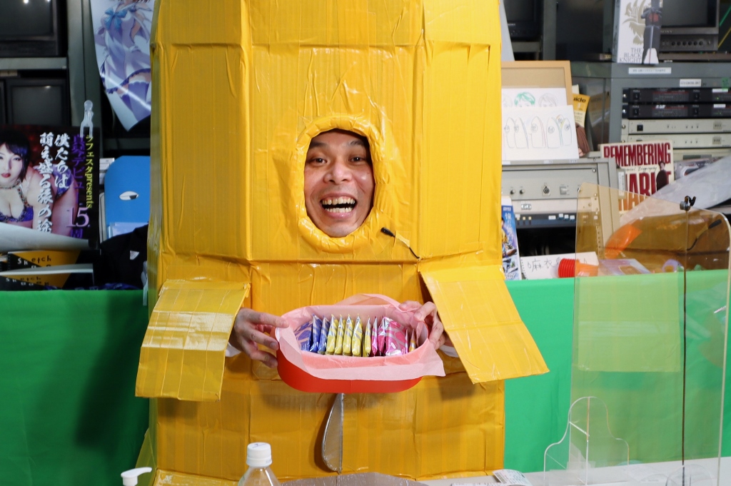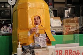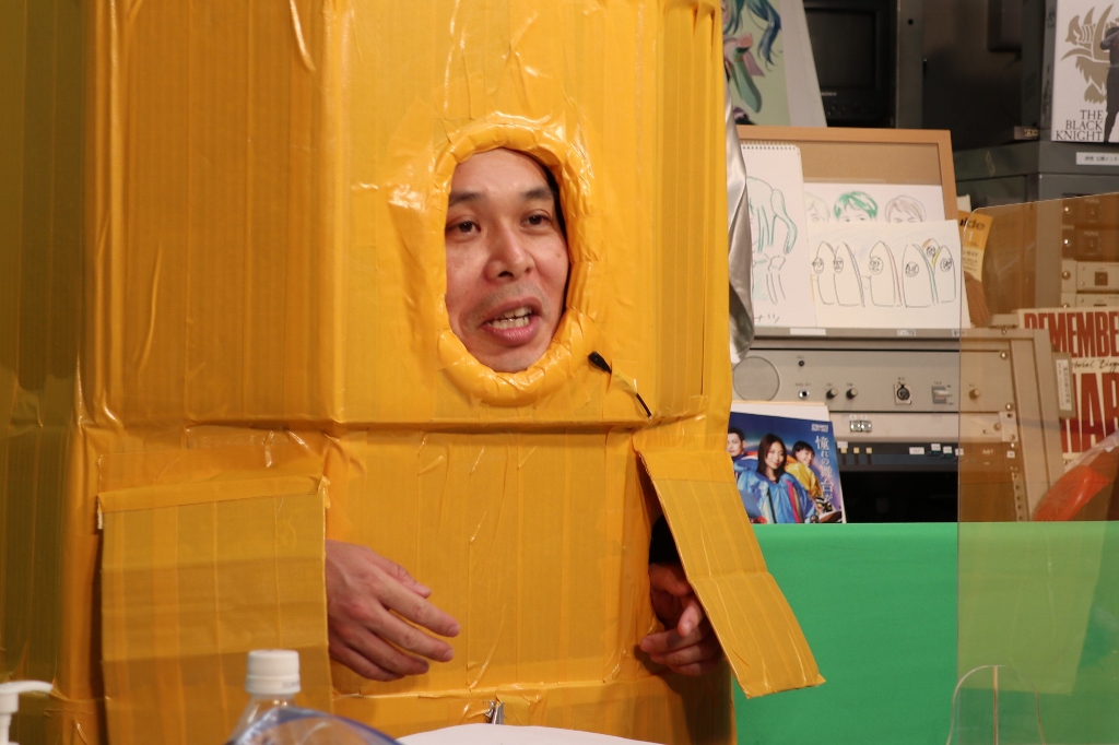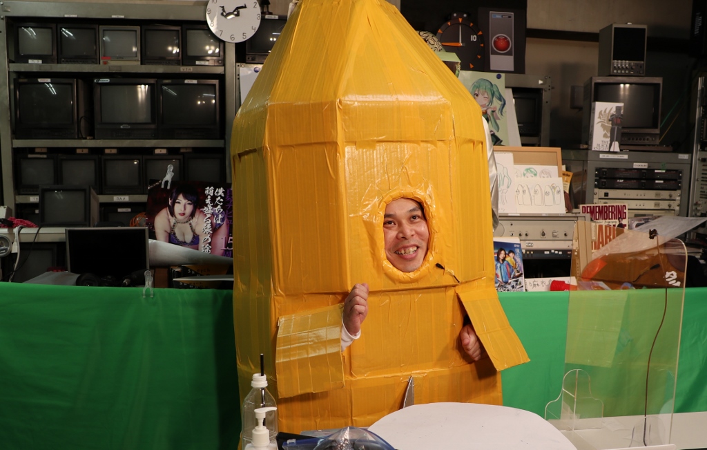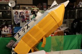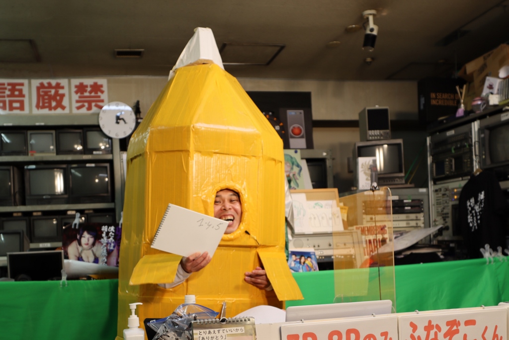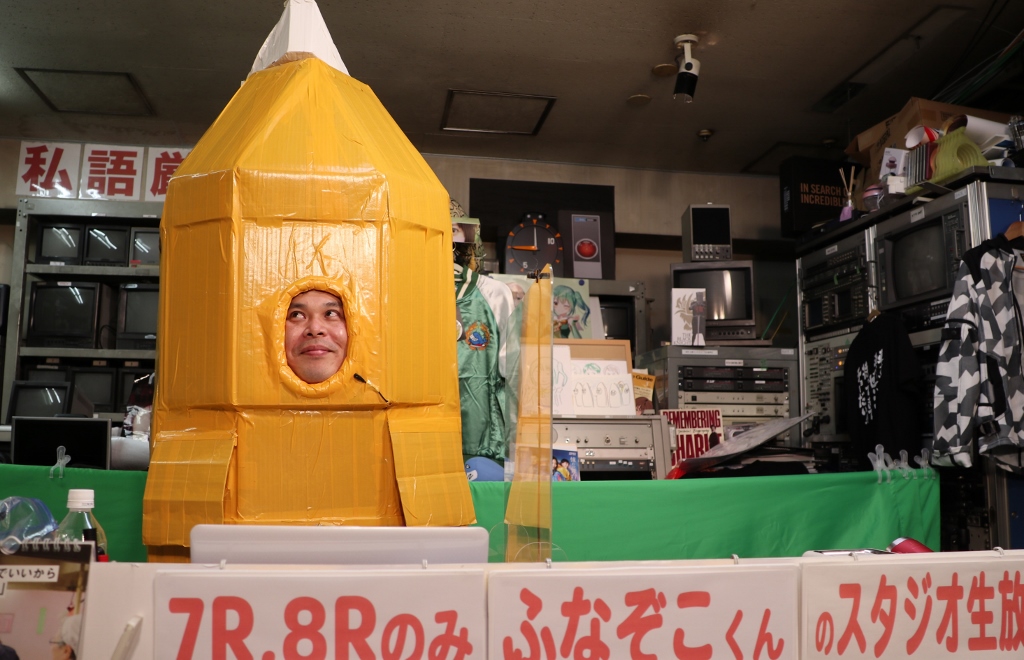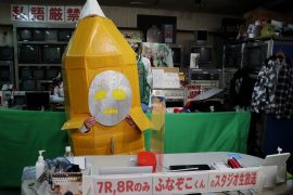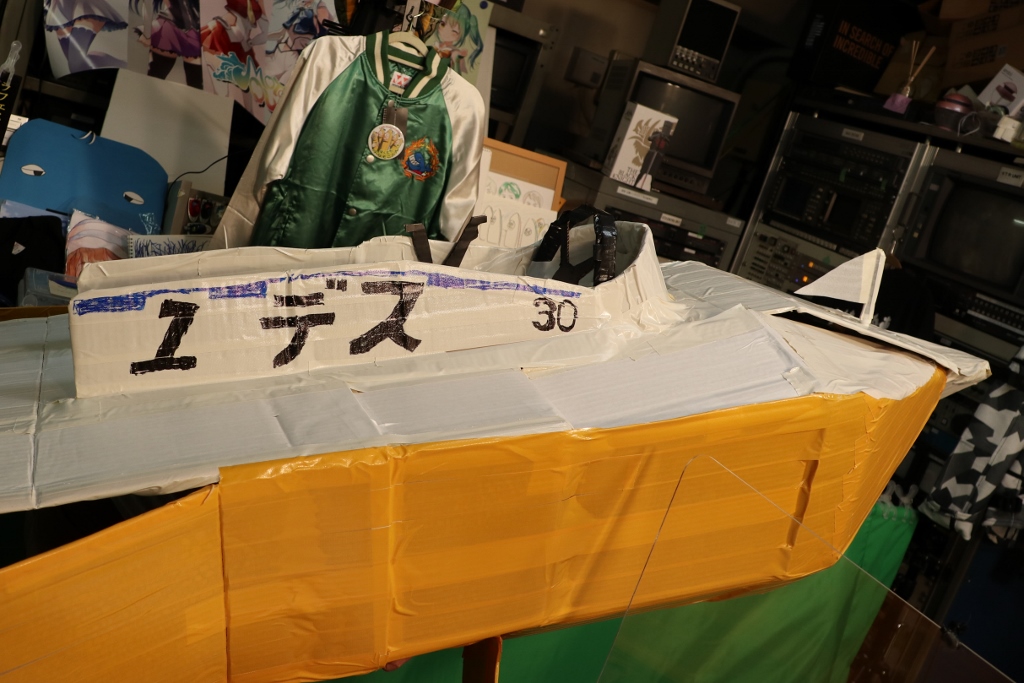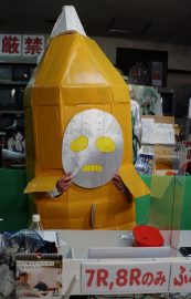 なにやらダンボールと粘着テープでの手作り感満載のふなぞこくん。。。。文化祭か!?ww