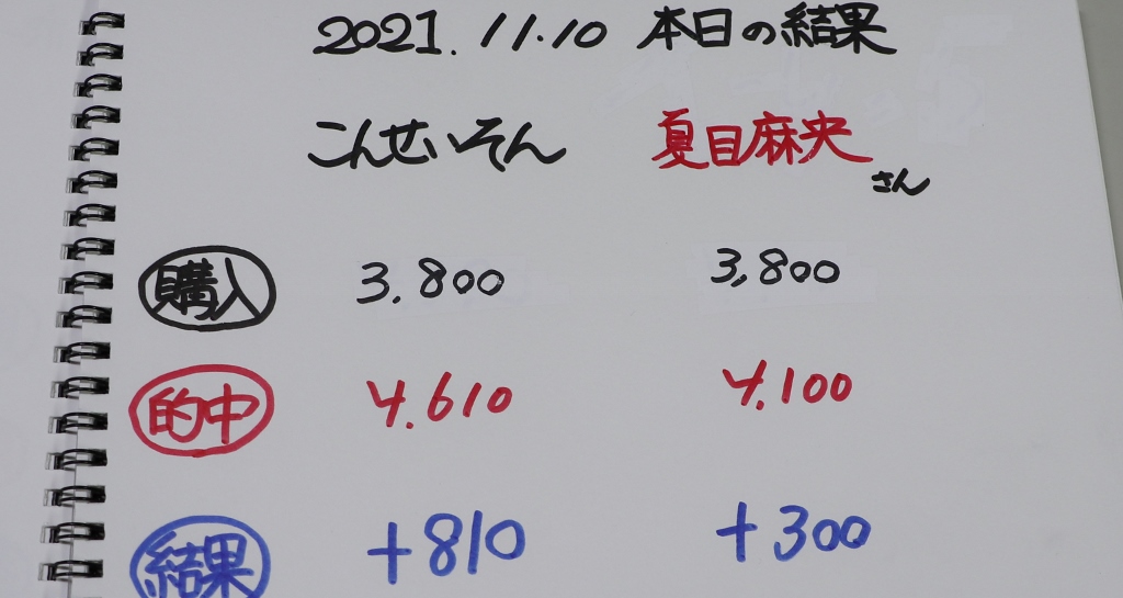 結局こんさん1勝、夏目さん1勝。収支はお二人共なんとかプラス!おお!
