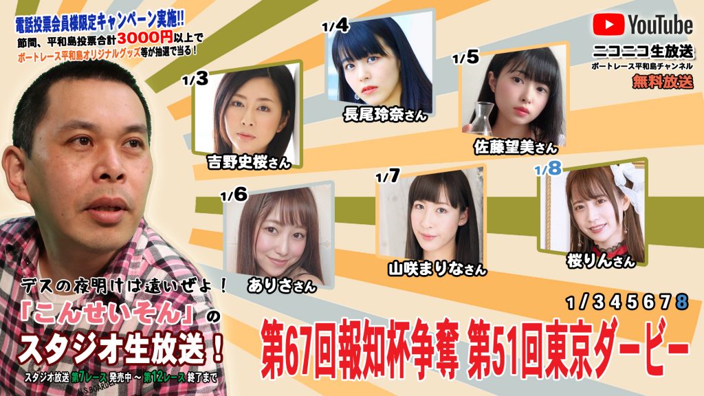 テレボートネット・電話投票、平和島3000円以上(1/3~8の間)ご購入の方を対象にニコ生オリジナルグッズが当るキャンペーンを実施!!