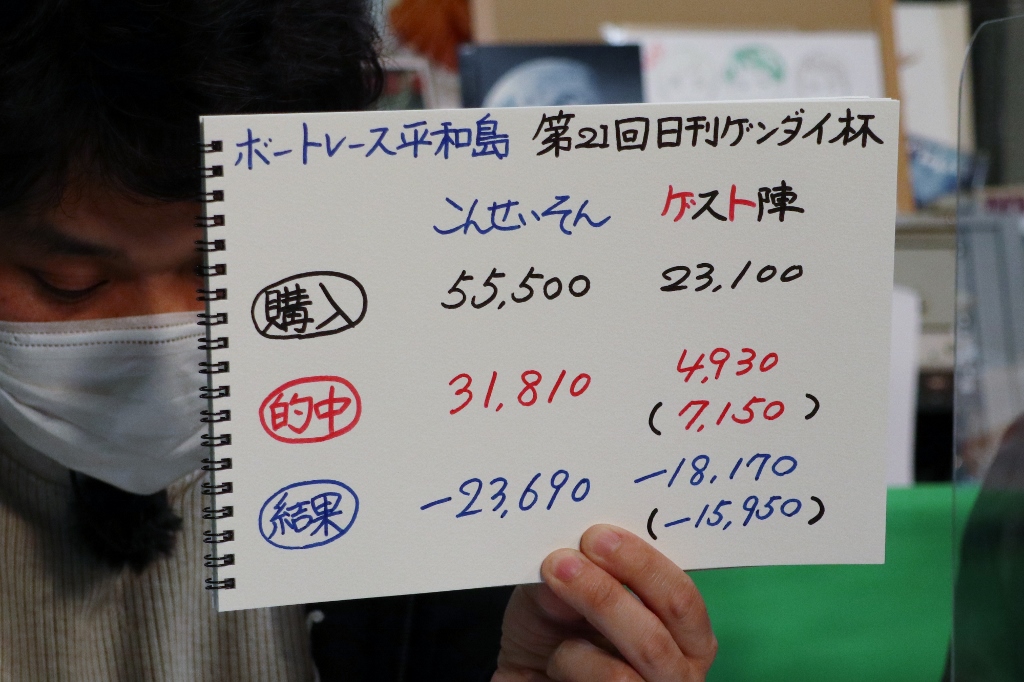 今節の結果はこんさん、ゲスト陣ともにマイナス収支でした。