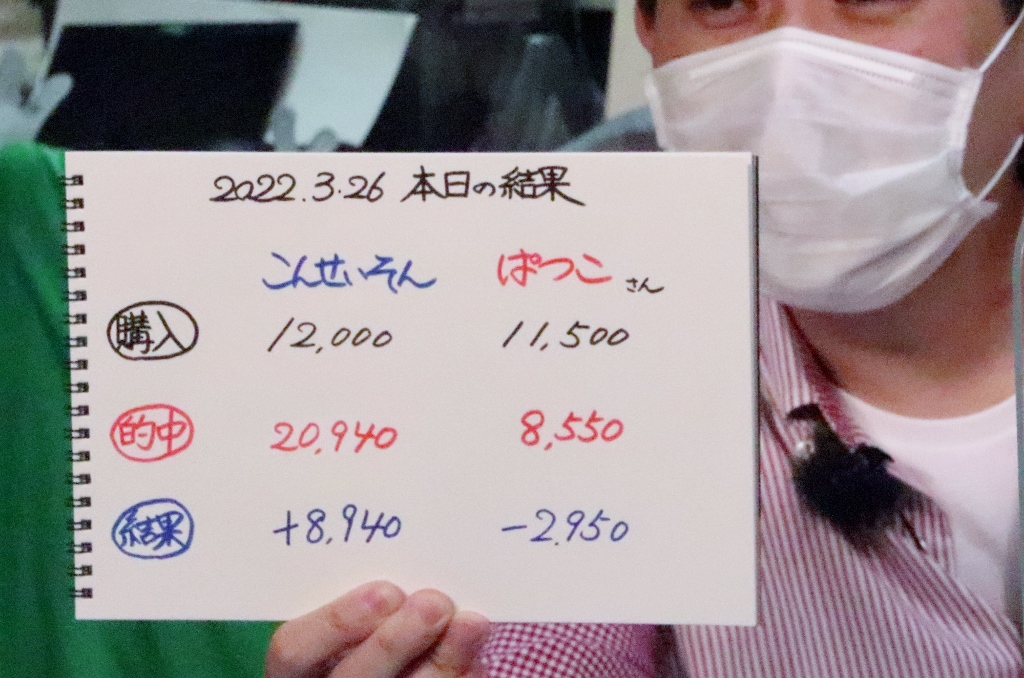こんさん3枚的中!おお!最初と最後に的中で逆転収支!さすが番組MCですねえ!