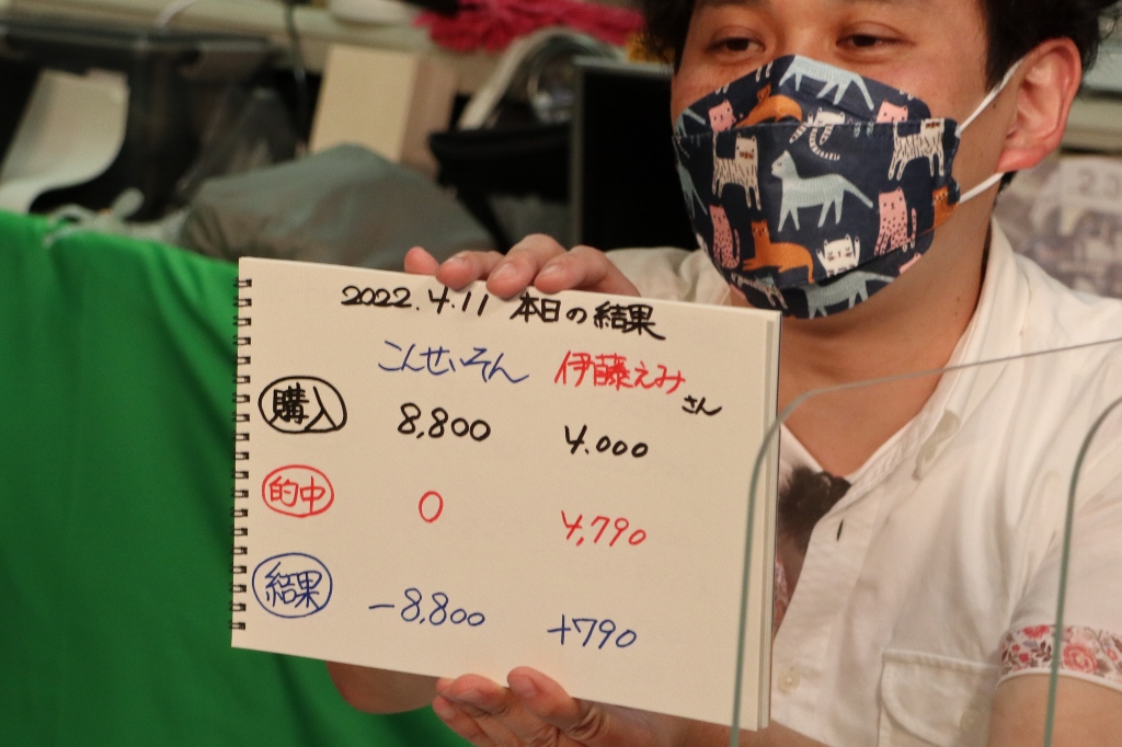 今節の結果はこんさんプラス収支、ゲスト陣マイナス収支でした。(※初日買いそびれ的中分を入れればプラスでしたが)
