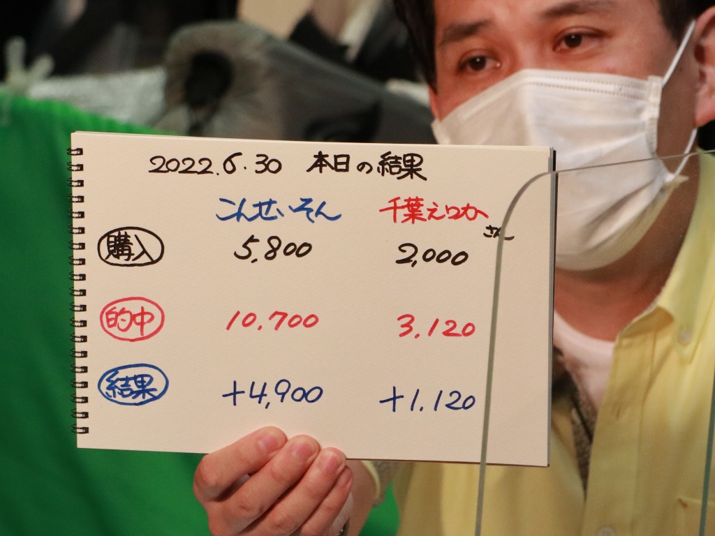 結局こんさん2勝、千葉さん4勝。破竹の4連勝お見事!収支はプラス収支でした!おめでとうございます!