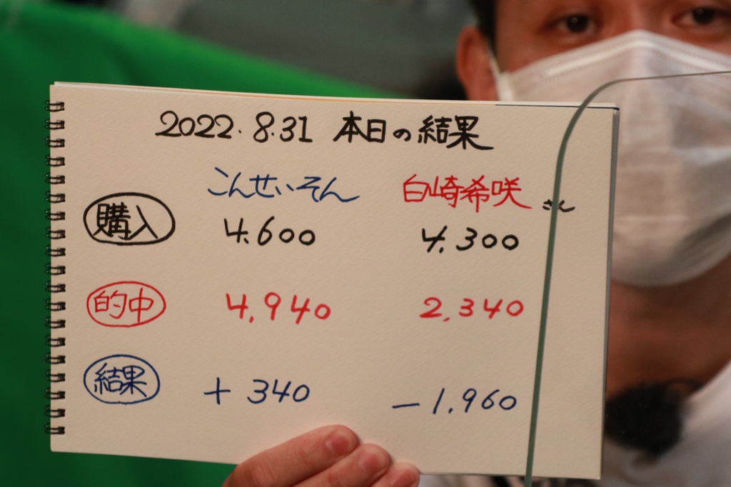 結局こんさん1勝、白崎さん1勝。収支はこんさん今日もまた辛くも逃げ切り!白崎さん残念!