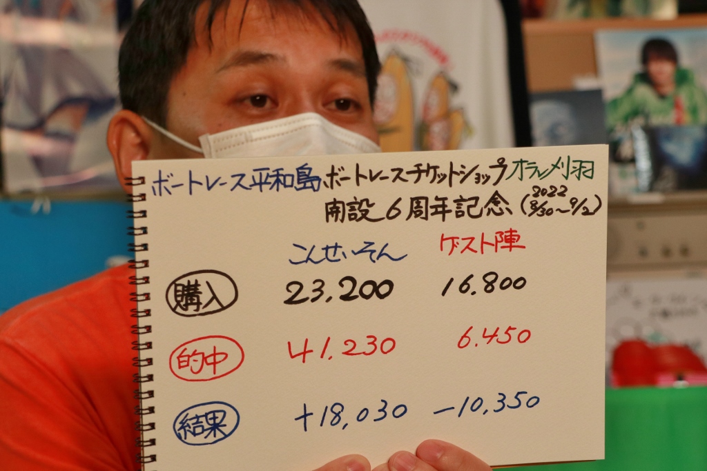 今節の結果はこんさん準パーフェクトとは言え見事なプラス収支! ゲスト陣マイナス収支でした。