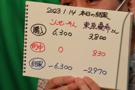 結局こんさん0勝、東原さん1勝。収支はマイナスでした。