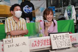 初日のゲストはあの「貴族買い(推しレーサーの3連単全通り買い60点)」の生みの親、タレント・女優、そして歌って踊れる小説家の山下 若菜 さん。前回昨年12月は1勝マイナス。でも貴族買いは応援だから結果は気にしていないハズ。今日も元祖の貴族コールが聞けるのでしょうか・・・
