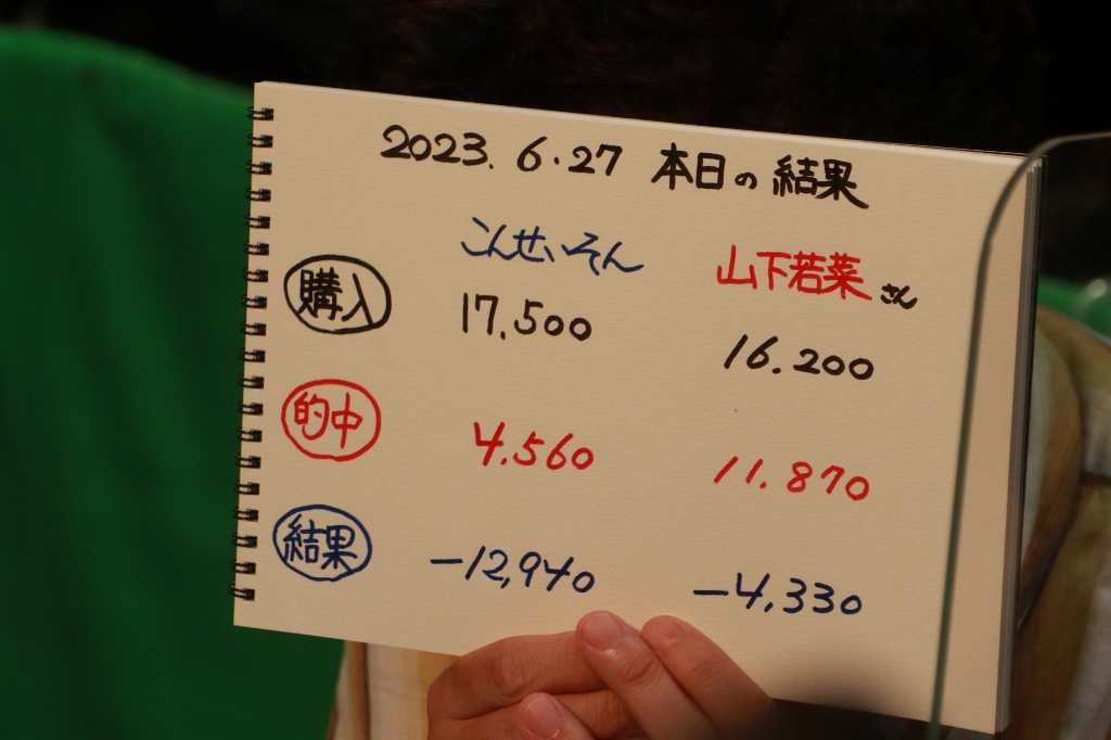 結局こんさん1勝、山下さん2勝。収支はマイナスでした。残念!