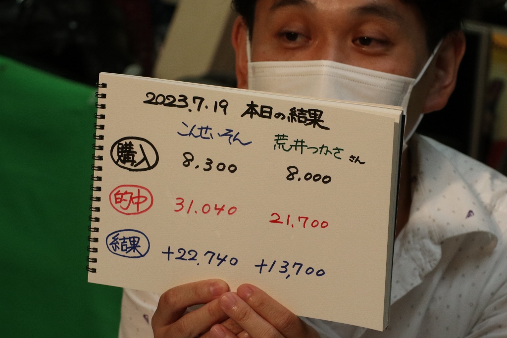 結局こんさん2勝、荒井さん4勝。収支はこんさん大逆転プラス、荒井さん見事な4連勝プラス収支!おめでとうございます!