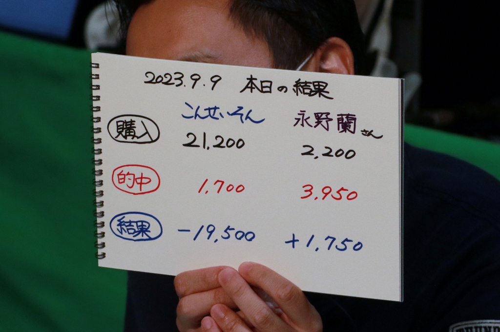 結局こんさん1勝、永野さん2勝。収支は永野さんが逆転プラス収支!おめでとうございます!