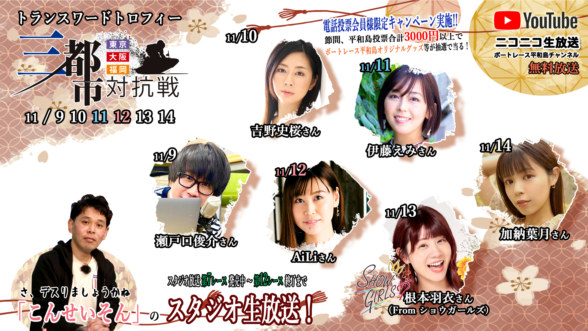 テレボートネット投票、平和島3000円以上(11/9~14の間)ご購入の方を対象にオリジナルグッズが当るキャンペーンを実施!!