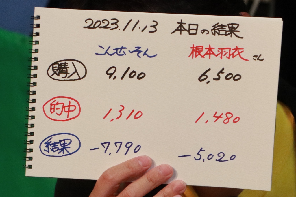 結局こんさん1勝、根本さん1勝。収支はマイナスでした。残念。