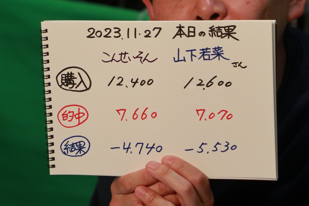 結局こんさん1勝、山下さん1勝。収支はマイナスでした。