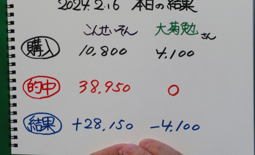 結局こんさん3勝、大菊さんまさかの全敗。収支はこんさん万舟ゲットで今節大幅プラス収支に!
