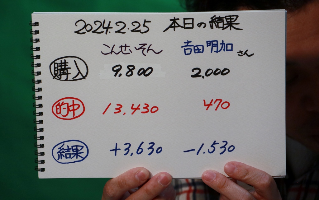 おお!お二人ともに的中!吉田さん今年初的中!おめでとうございます!こんさん連敗脱出!