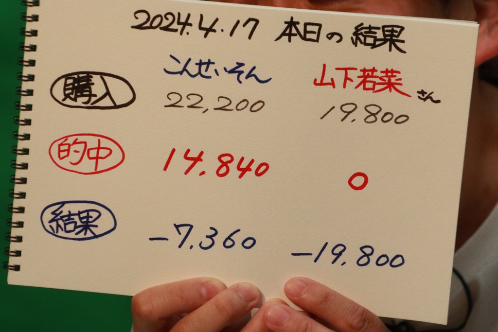 前回昨年8月のスタジオでは1勝マイナス。そして松澤さんは2勝マイナス収支。