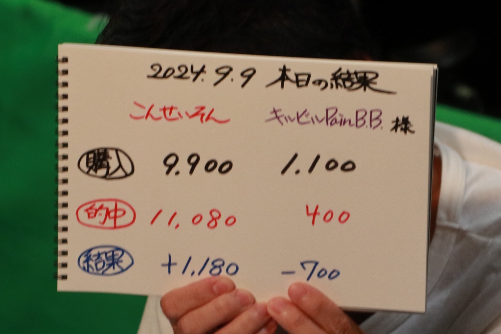 昨日今日でキルビルPainB.B. さんは12戦4勝、プラス収支でした!逃げ切りお見事でした!