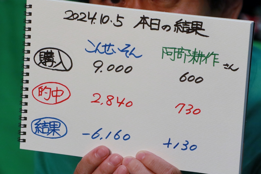 おお!お二人共に的中!阿部さん久しぶりの的中です!おめでとうございます!こんさんちゃっかり2枚ゲット。