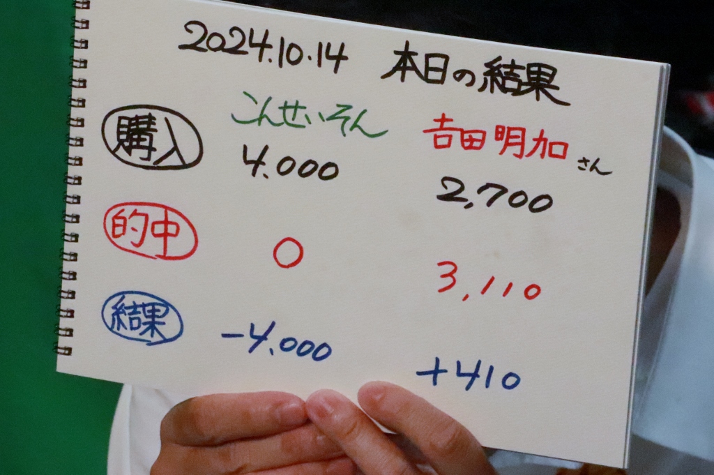 結局こんさん0勝、吉田さん3勝。収支は吉田さんプラス収支!更におめでとうございます!