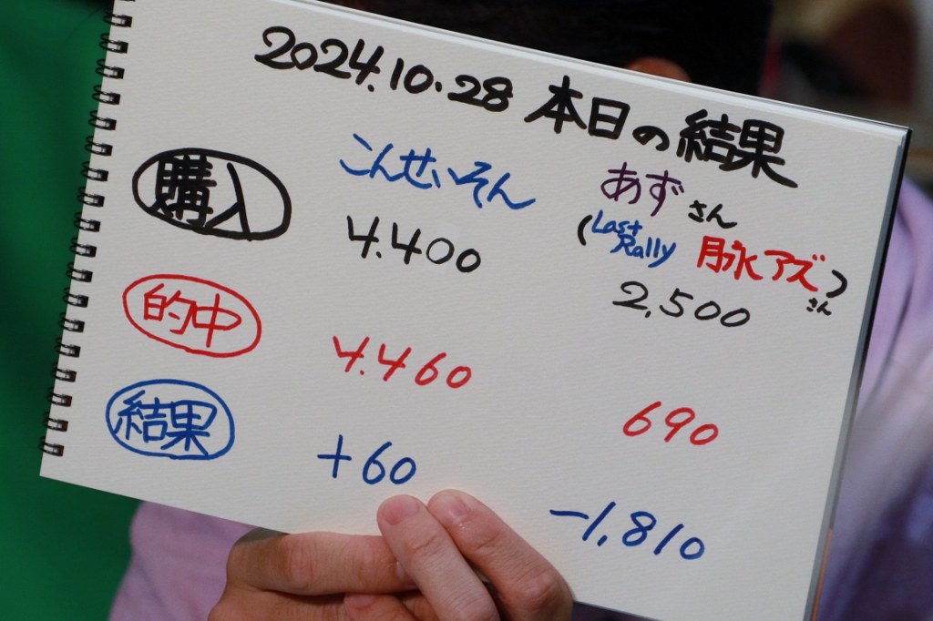 結局こんさん2勝、あずさん1勝。収支はこんさん確信的に逃げ切りプラス!