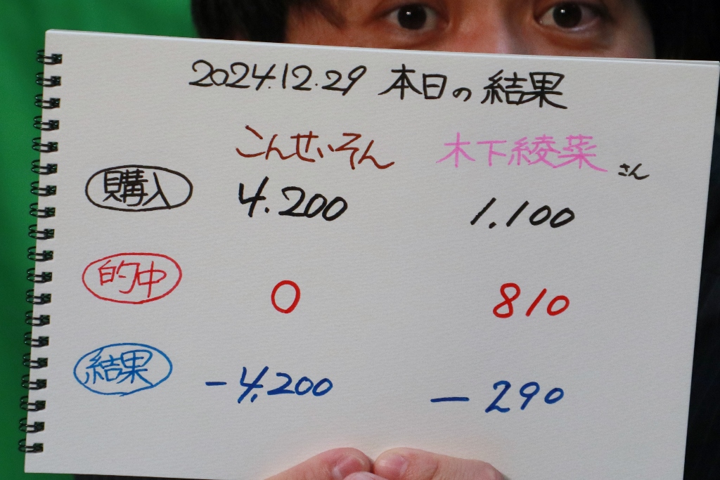 結局こんさん0勝、木下さん1勝。収支はマイナスでした。ホント残念。