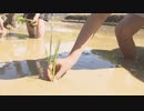 沼にはまって泥んこに-小学生が農家に学び“田植え”「食への感謝」