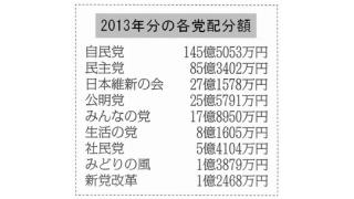 13年分 政党助成金―10党で320億円受け取り請求