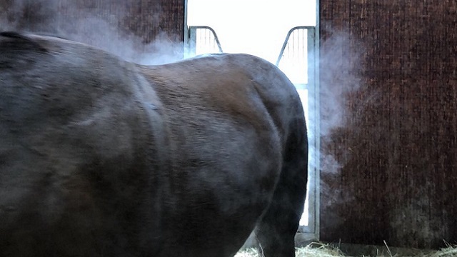 トレーニング終了後のオーバーザリミッツの馬体を見てみると、このように湯気がモクモクでています。オーバーザリミッツの代謝の良さが北海道の寒さで際立った一枚です。▼明日も朝8時半から定点放送http://live.nicovideo.jp/watch/lv309637916【リアルダービースタリオン情報】 ▼公式サイト http://site.nicovideo.jp/r...