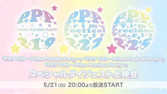 『GS382 ―暁の章―』、『プライムーン&GS382 ―2022年に愛を込めて―』の2作品が5月22日(月)からレンタル配信を開始いたします。それを記念して、『P.P.P 219 ~Prime Puckish Party~』『P.P.P 222 ~Prime Poetical Party~』『P.P.P 225 ~Prime Precious Party~』の3作品のダイジェスト映像を放送いたします!ぜひ...