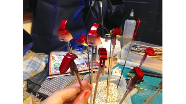 今日も曇りと雨で涼しい日だった。相変わらずプラモデルの作業がなかなか進まないので、1日1工程という具合に2時間程度の作業だけした。ゴールドに塗った後に上からクリアレッドを吹き付けた赤。依頼者が「こんな感じでやってください」と例に出したブログの作例に書いてあったので同じ方法をとった。このやり方自体は自...