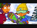 スキー場でスノーボートを楽しむ4人。オットーが大きなジャンプ台を見つけるが、スキー・パトロールのランスに子供は滑ってはダメだと注意される。 / 足を骨...