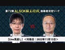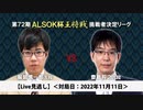 【Live見逃し】第72期ALSOK杯王将戦 挑戦者決定リーグ戦 渡辺明名人 vs 糸谷哲郎八段 対局日:2022年11月11日(金) 解説者:石田直裕五段 聞き手:安食総子女...