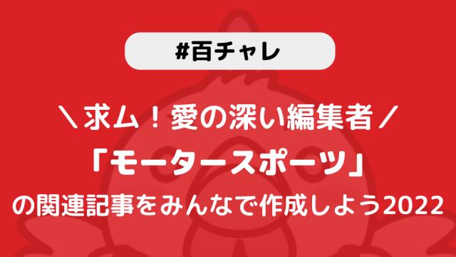 【百チャレ】モータースポーツ2022が12月22日からスタートします