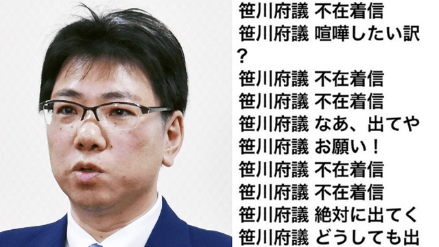 5月23日、府議団代表の辞任会見を開いた大阪維新の会の笹川理(おさむ)府議(41)。小誌が5月18日発売号で、宮脇希(のぞみ)大阪市議(36)へのストーカー疑惑などを報じて以降も、続投に固執していたが……。
