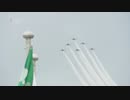 ブルーインパルスが一糸乱れぬ編隊で福岡上空に“6つの帯”世界水泳を祝福