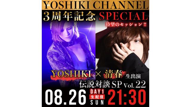 【8月26日(日)20時〜生放送決定】YOSHIKI CHANNEL 3周年記念SP DAY1〜清春との生セッションが遂に〜