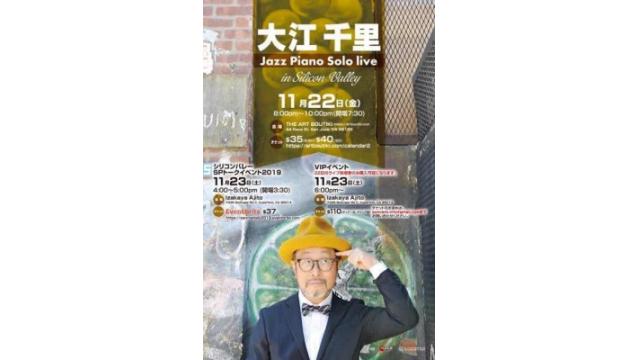 大江千里 イン シリコンバレーJazz Solo Live in Silicon Valley, Art Boutiki Music Hall11月22日(金曜日)8時−10時(開場7時半)チケットはこちらから。https://artboutiki.com/calendar2/2019/11/22/senri-oe-jazz-pianist-at-art-boutiki?fbclid=IwAR20xENJStZY_YckEDl2X-cfpqz2rc8w3eGd2_sjQ29hOtzT4_41TQla6i0SP...