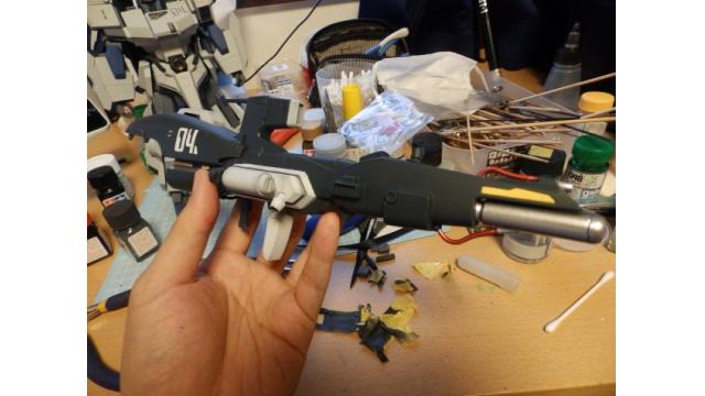 暑さは相変わらずだが曇り。台風がきているという。昼の時点で東京ではまだ雨は降ってきていない。蒸し暑さと戦いながら扇風機をあてつつプラモデル作業。最後のツヤ消し処理も終えて、だいたい作業が完了した。やはりMGはHGに比べ、ブロックごとに別れたパーツの最後の組み上げにすら結構時間がかかる。このキットの目...