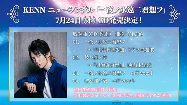 KENNが歌うオープニングテーマ『月灯りの狂詩曲(ラプソディア)』、好男子が歌う『TVアニメ「明治東亰恋伽」EDテーマ集