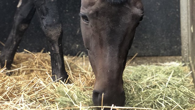青草が生えてきましたが、ルーサン(乾燥した牧草)も美味しいので食べているシュシュブリーズです!▼ただいま定点放送中!<a href=
