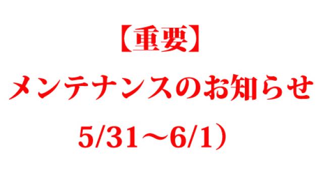 【重要】メンテナンスのお知らせ(5/31~6/1)
