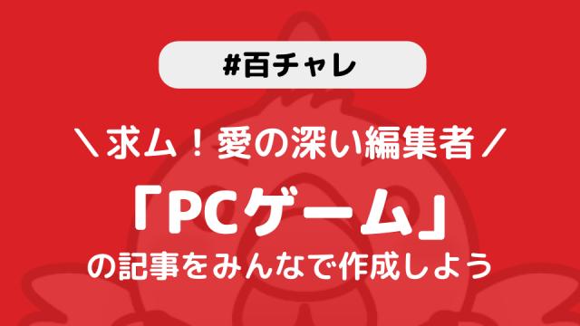 いつもニコニコ大百科をご利用いただきありがとうございます。大百科運営チームです。2020年3月26日から新たな「百チャレ」の企画が始動いたします。今回のテーマは、「PCゲーム」です!▼特設ページはこちら▼【百チャレ】愛の深い編集者!実在・架空の『PCゲーム』の記事を作ろう『百チャレ』とは?1つのテーマに沿って、...