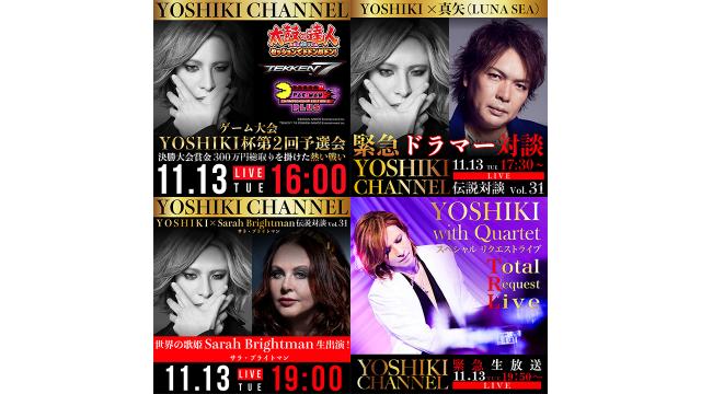 YOSHIKI CHANNEL アーカイブ動画更新!ご視聴はこちらから↓動画ページhttps://ch.nicovideo.jp/yoshikiofficial/video2018年11月13日放送 超豪華4本立て特別企画! 第1部『YOSHIKIゲーム杯』第二回予選大会/第2部LUNA SEA真矢ドラマー対談/ 第3部YOSHIKI×サラ・ブライトマン対談/第4部YOSHIKIリクエストライブ第1部は、...