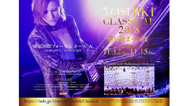 9月13日(木)より、YOSHIKIカード会員(VIP,VISA,yoshikitty)先行抽選受付開始!!9月20日(木)18時よりYOSHIKI mobile、YOSHIKI CHANNEL先行抽選受付開始!!本日、YOSHIKIさんが、11月12日(月)、15日(木)の2日間、東京国際フォーラムで「YOSHIKI CLASSICAL 2018 〜紫に染まった夜〜 YOSHIKI with Philharm...