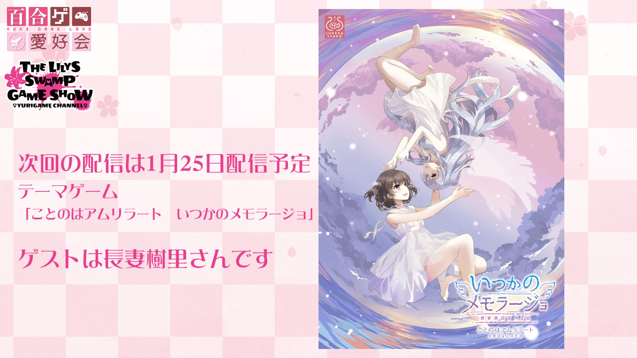 ♡1月25日(金)21時からニコ生で『リリーズ・スワンプ・ゲームショウ~いつかのメモラージョの巻』配信予定です。